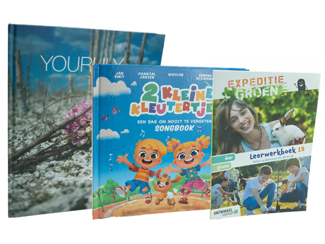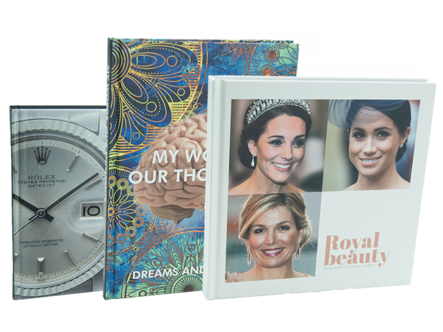 Je kunt een omslag op veel verschillende manieren opleuken en bijzonder maken. Opvallende opties zijn bijvoorbeeld de omslag bewerken met UV-Spot, foliedruk en/of een preeg. Daarnaast is het ook mogelijk om je omslag te laten bekleden met speciaal materiaal, zoals linnen of leer. Zowel linnen als leer zijn beschikbaar in veel verschillende kleuren en zorgen voor een opvallende uitstraling. Ben je nieuwsgierig geworden? Je bent van harte welkom in ons Experience Center om voorbeelden te komen bekijken.