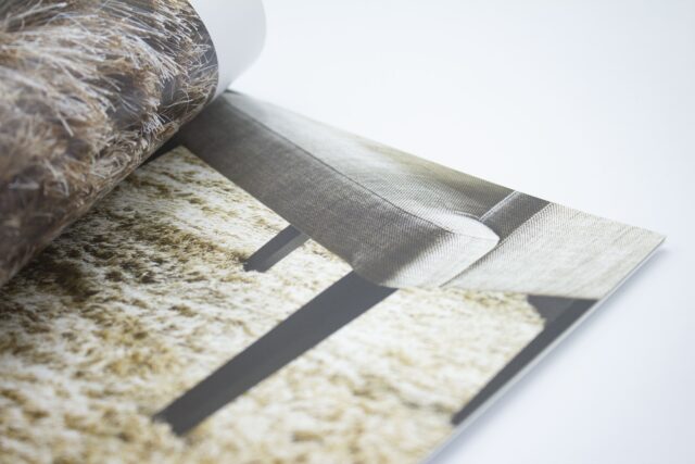 Deze catalogus van Ebru heeft een stijlvolle uitstraling door het cover met linnenstructuur en het goudfolie. De sfeervolle foto's komen goed tot hun recht op het matte papier van het binnenwerk.
